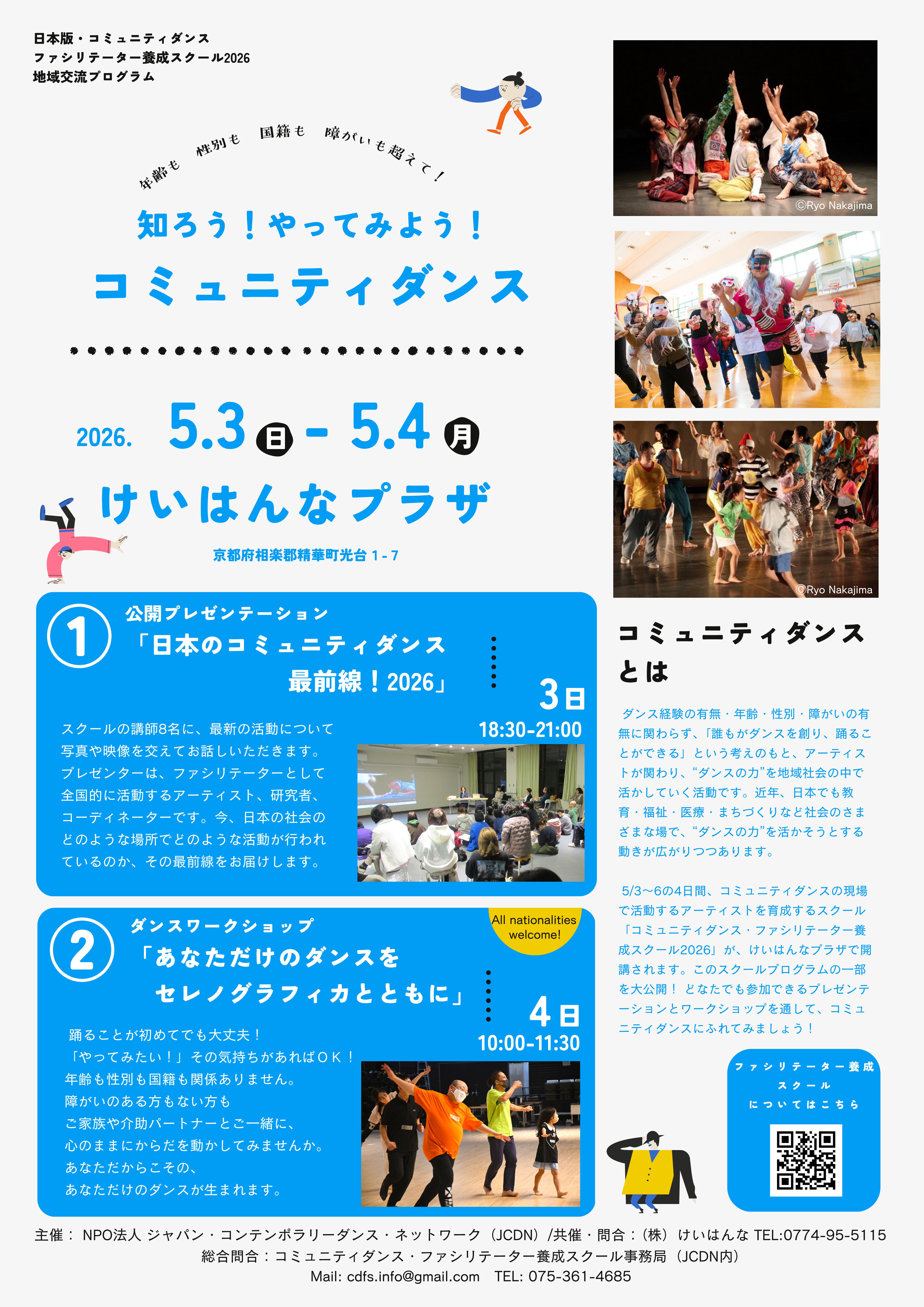 (株)けいはんな TEL:0774-95-5115【総合問合せ】コミュニティダンス・ファシリテーター養成スクール事務局(JCDN内)